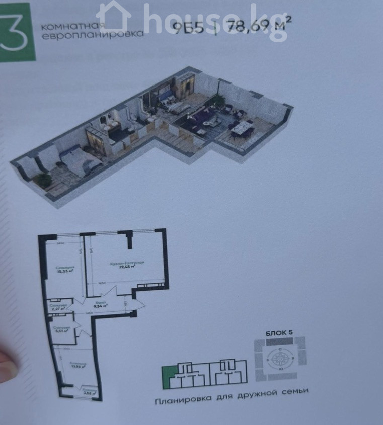 3-бөлм. бат., 79 м2