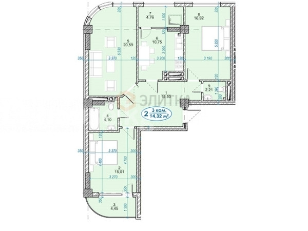 3-бөлм. бат., 94 м2