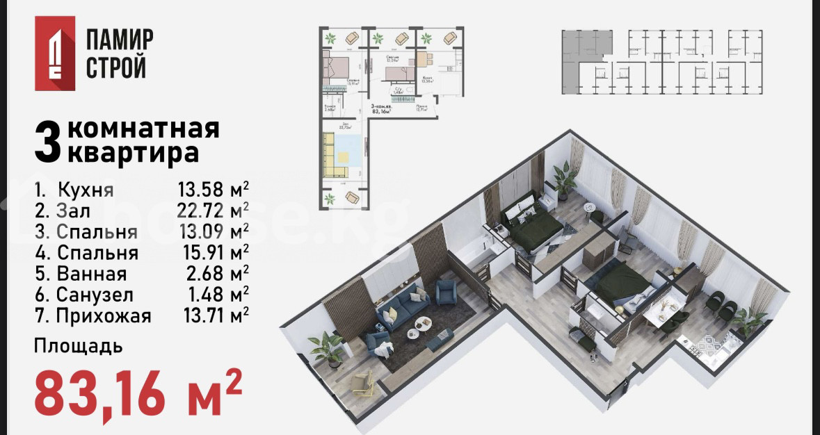 $ 77 000 $ 929/м2 6 743 660 сом 81 362 сом/м2