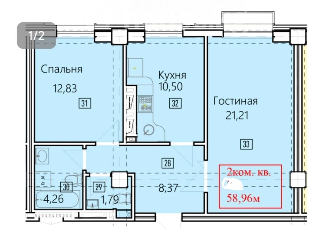 58.96 м2
