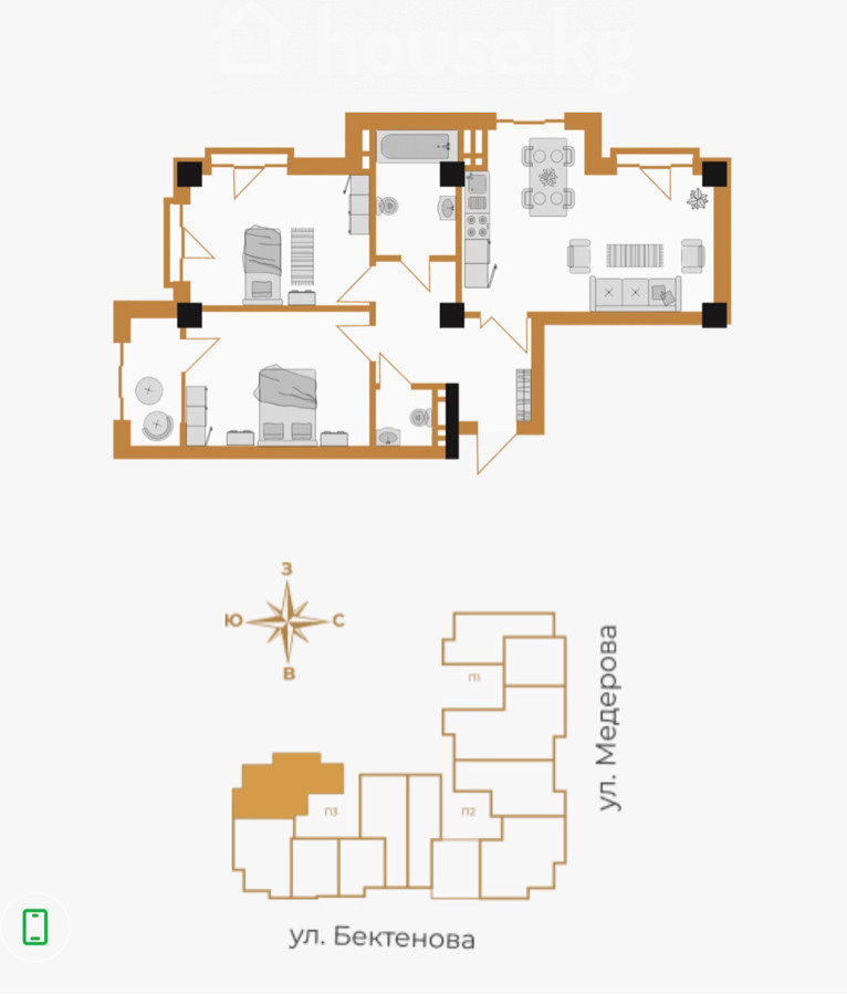Сатуу, 3-бөлм. бат., пентхаус, Бишкек, Матросова