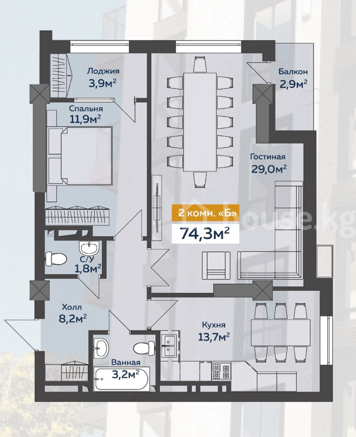 $ 124 500 $ 1 868/м2 10 902 465 сом 163 581 сом/м2