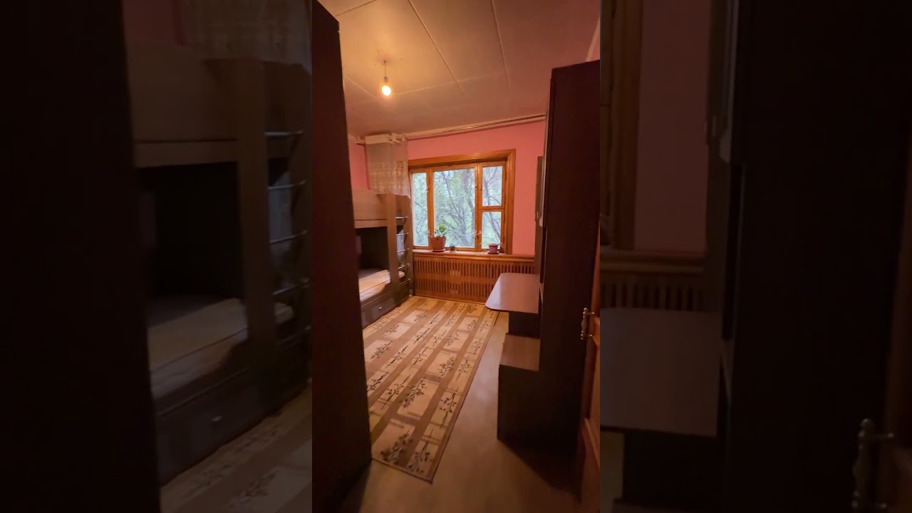 Трехкомнатная квартира с раздельной планировкой и мебелью. - Просторный коридор с антресолями для хранения, деревянные межкомнатные двери, встроенная шведская стенка. - Две отдельные спальни: - спальня с двуспальной кроватью, шторами и напольным радиатором; - детская/кабинет с большим письменным столом, навесными полками, тумбой и трехстворчатым шкафом. - Кухня и проходная зона отделены арочным проемом с отделкой деревом. - Санузел раздельный: ванная комната облицована плиткой, установлена ванна, умывальник с зеркалом во всю стену, душевой комплект, полотенцедержатели, полки и шторка для душа. - Полы —линолеум/кафель, ковровые дорожки; потолки с декоративными панелями. - Пластиковые окна, вид во двор с зеленью. - В прихожей — обувница/стеллаж, коврик; в комнатах — карнизы и шторы. Квартира готова для проживания: есть базовый комплект мебели и освещения, предусмотрены места для хранения в каждой комнате. Подходит для семьи, организации рабочего места и детской.