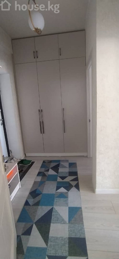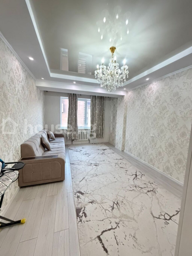 Продается 1-комнатная квартира с современной отделкой и мебелью. Квадратура 48м2 Средний Джал Элитка Этаж: 7/13 ЖК Джал Ордо Центральное отопление - Планировка: отдельная гостиная и кухня‑столовая, изолированная спальня, просторный коридор с системой хранения, совмещённый санузел с ванной. - Гостиная: большой диван, текстильные шторы, светлые стены с декоративным узором, потолок с нишами и люстрой, панорамное окно, радиатор отопления, светлый ламинат, ковёр с мраморным рисунком. - Кухня‑столовая: кухонный гарнитур с глянцевыми фасадами, холодильник, обеденный стол, стулья и угловой диван, окно, точечная и подвесная подсветка. - Прихожая: встроенный шкаф‑купе во всю стену с верхними антресолями, длинный ковёр‑дорожка, потолочный светильник. - Санузел: керамическая плитка на стенах и полу, ванна с душевой стойкой и шторкой, унитаз, полотенцесушитель, потолок из панелей с встроенным освещением. - Отделка: светлая цветовая гамма, натяжные потолки с подсветкой, ламинат и плитка, современные двери. - Окна: пластиковые, много света. - Дополнительно: розетки и выключатели, радиаторы отопления, карнизы и шторы. Квартира полностью готова к проживанию: мебель и техника на фото входят в состав. Подходит для семьи, удобные зоны для отдыха и приёма гостей. Цена: 76 000$ телефон: +996705887288 ID: 75266