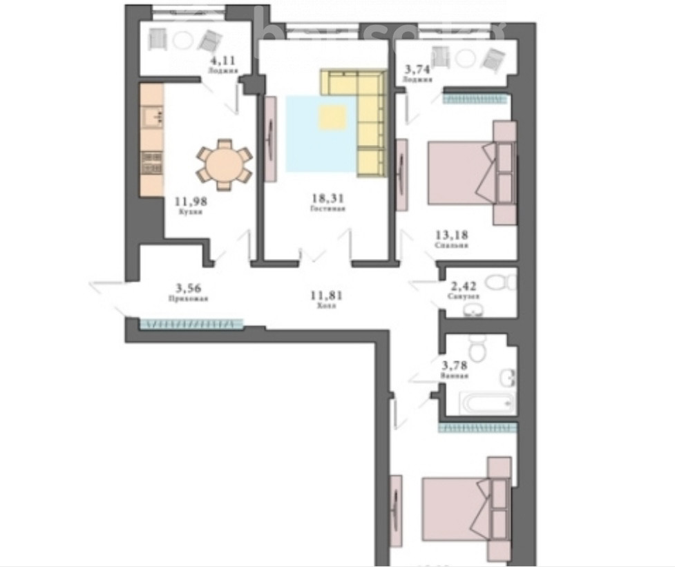 88 м2, ашкана: 16 м2