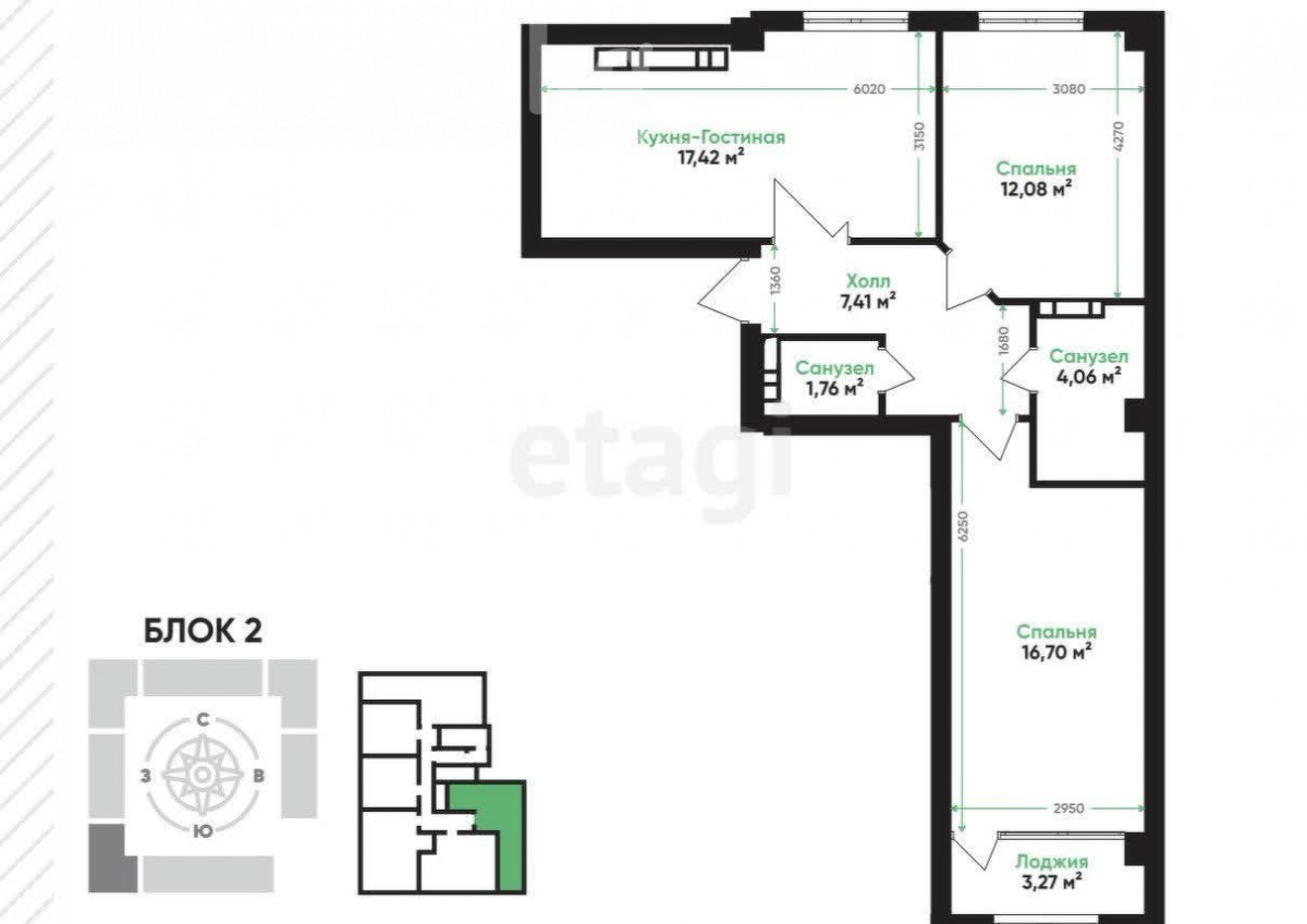 3-бөлм. бат., 63.35 м2