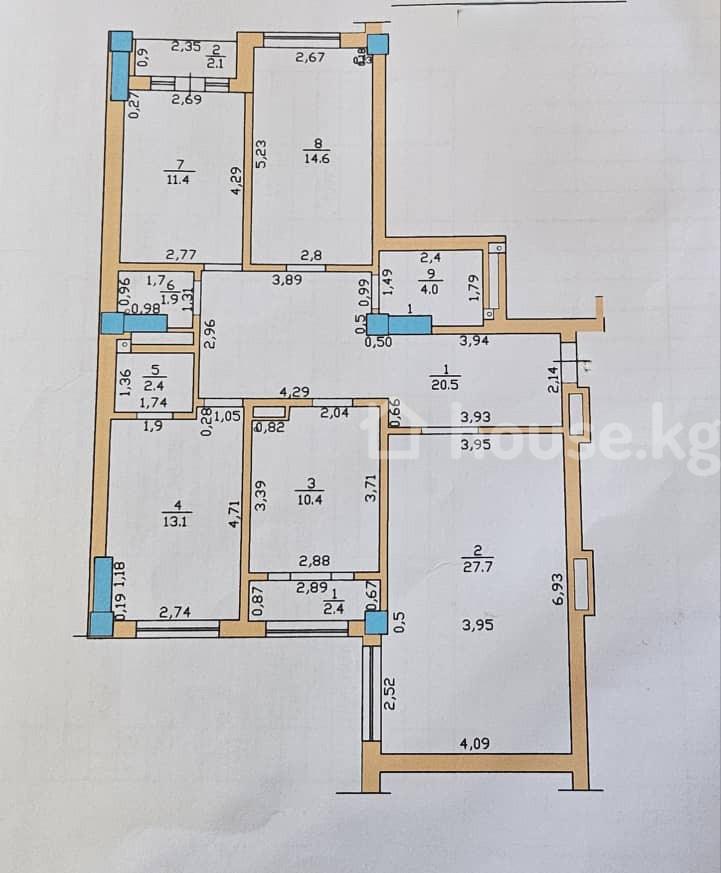 106 м2, турак жай: 97 м2, ашкана: 27 м2