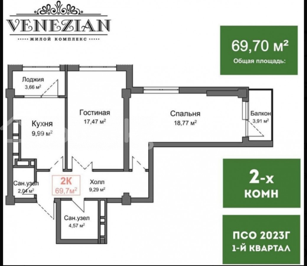 2-бөлм. бат., 69.7 м2