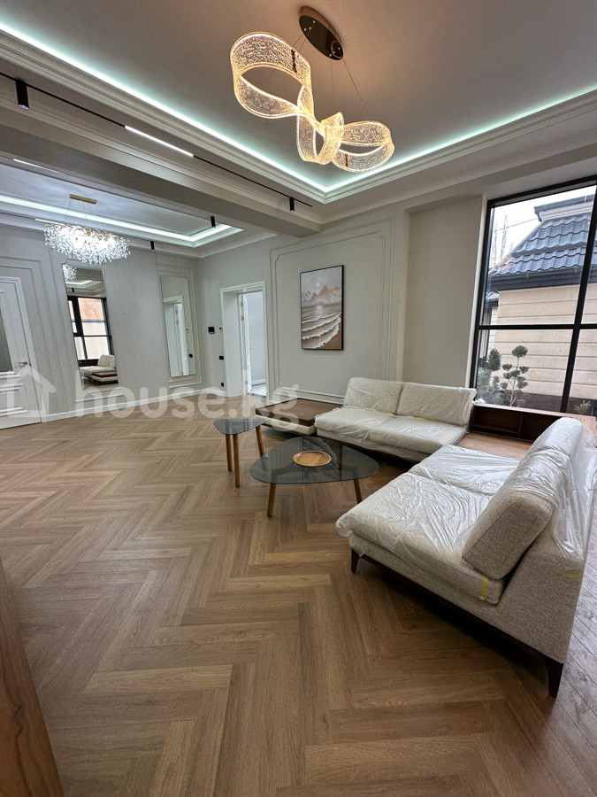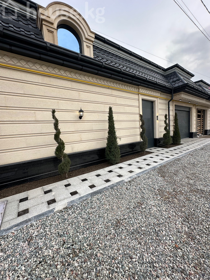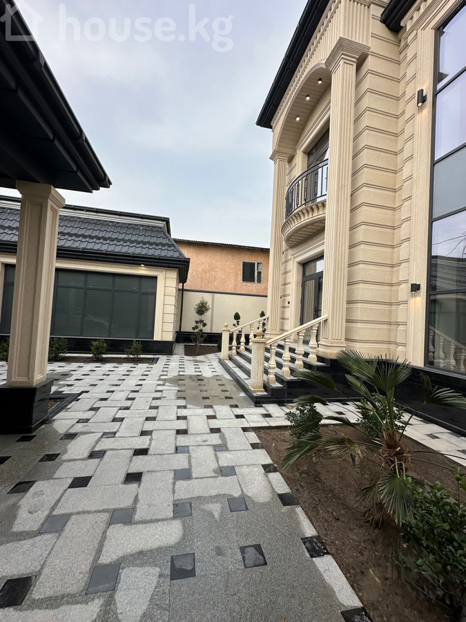 Продается премиальный двухуровневый дом с качественным дизайнерским ремонтом . Территория дома полностью гранит фасад дома Сары Таш. В проекте есть : бассейн , парилка, баня , терраса, зона барбекю, навес на две машины и зеленая зона . Общая площадь:300м2 Площадь участка: 5 соток Количество комнат :6 Район: ж/ м Ак Орго Документы: Красная книга | Технический паспорт Отопление : Газовое Коммуникации: свет, вода, газ и центральная канализация. Стоимость: 695000$ Дополнительно:Качественно возводен и большое внимание к деталям. Тел 0701256010 Айдай
